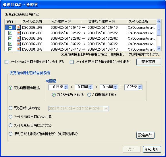マウス右メニューの「撮影日時の一括変更」が選択された場合、表示されます。